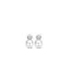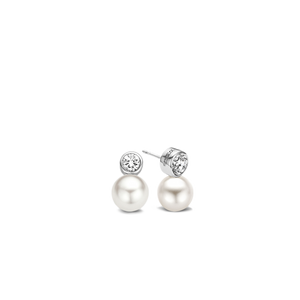 These TI SENTO earrings are made from rhodium plated sterling silver and set with white pearls and zirconias. A single 8 millimetre pearl is set below each stud, which is itself formed from a bezel-set brilliant-cut cubic zirconia. The classic earrings in modern design are an essential item for your jewellery box. The silver elements of these earrings are then hard-plated in rhodium to give extra shine and also to provide longer life.
