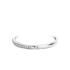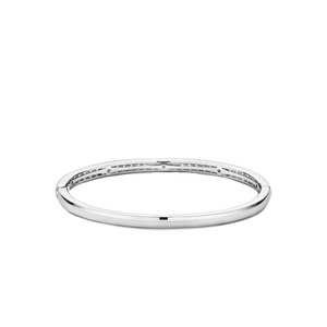 This beautiful TI SENTO bracelet is set with cubic zirconia stones, with riveted accents for a touch of texture. This oval-shaped bracelet is coated with a rhodium finish, giving the sterling silver material extra shine and shimmer, as well as reducing wear and tear. Easy to wear and incredibly comfortable, this bracelet features an integrated hinge and lock fastening. This TI SENTO bracelet also features an incredibly smooth interior, reducing the chance of snagging and discomfort when worn.