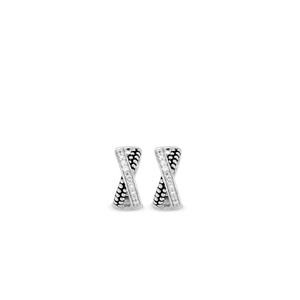 These TI SENTO earrings are crafted from two bands set at a diagonal. The whole design features a setting of rhodium plated sterling silver which creates a long lasting shine. One band is made up of two rows of polished silver spheres with a slight touch of black oxidation. The other band is hand-set with a row of brilliant-cut cubic zirconia interspersed with tiny silver spheres. These earrings which give a sparkling finish to both day and evening outfits fit into the TI SENTO Mix & Match concept.