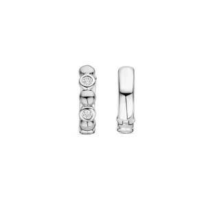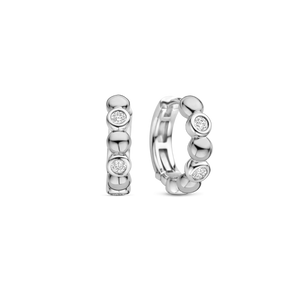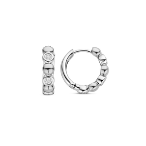 The TI SENTO Silver Hoop Earrings 78008ZI bring a contemporary twist to classic elegance. Crafted from premium 925 sterling silver and plated with precious platinum, these hoops are designed to stay radiant and protected over time. Their unique design alternates brilliant bezel-set cubic zirconia stones with flawlessly polished silver beads, creating a rhythmic dance of light and shine with every movement. A perfect balance of modern minimalism and refined sparkle, these earrings are versatile enough for everyday wear yet striking enough for special occasions. Their secure hinge closure ensures a comfortable fit, allowing you to style them effortlessly—whether worn alone for a subtle statement or paired with other pieces for a layered, contemporary look. Nickel-free and hypoallergenic, they ensure luxurious comfort with every wear. A timeless staple with a fresh, modern edge, these radiant hoops add brilliance and sophistication to any jewellery collection.