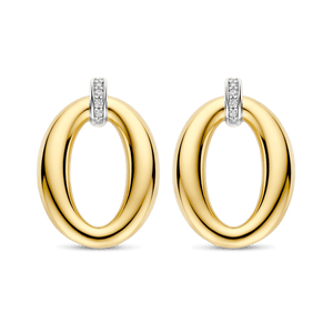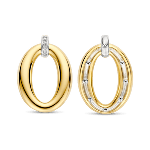 These TI SENTO Gold-Plated Silver Oval Earrings 78013ZY bring a bold, contemporary spin to effortless elegance. Crafted from premium 925 sterling silver, these earrings feature a smooth, yellow gold-plated oval link suspended from a pavé-set cubic zirconia connector, delivering just the right amount of shimmer. The mix of warm golden tones and cool platinum-plated accents creates a striking contrast, blending modern edge with timeless appeal. A statement of connection and strength, these interlocking ovals symbolise the seamless harmony between boldness and beauty. Designed to elevate everything from a power suit to an evening ensemble, these earrings add an instant touch of sophistication. Nickel-free and hypoallergenic, they promise luxurious comfort with every wear. Whether styled with a sleek ponytail or tousled waves, these versatile beauties are a refined essential for any jewellery collection.