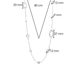 Elevate your style with the TI SENTO Silver Necklace 34081ZI, a refined piece crafted from premium 925 sterling silver and plated with precious platinum to ensure lasting brilliance and protection. This delicate necklace showcases a sophisticated interplay of cushion-shaped and signature rectangular elements, adorned with pavé-set cubic zirconia and luminous mother-of-pearl accents. Each detail is thoughtfully placed along the chain, creating a modern yet timeless aesthetic. A versatile statement of elegance, this piece effortlessly enhances any summer ensemble with a subtle shimmer and contemporary edge. Hypoallergenic and nickel-free, it’s designed to offer both luxurious comfort and enduring beauty—your perfect companion for every occasion.
