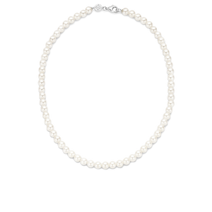 This classic TI SENTO pearl necklace makes the perfect addition to the collection. Wear it on its own for a stunning effect, or combine with other pearl pieces and pendants for an elegant complement. Chains with clip-eye fastening can be attached between the beads of this necklace, allowing to customise this piece to the liking. This necklace is available in lengths of 42cm and 90cm.