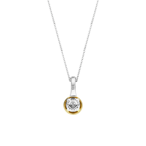 This silver TI SENTO pendant has a large zirconia in the middle, set in a smooth setting that is yellow gold plated with yellow gold. The eye of the pendant is set with smaller brilliant cut zircon... read more