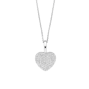 This heart-shaped TI SENTO pendant is part of the Mix & Match concept. The heart has a pavé setting with zirconias, and the back is engraved featuring the recognizable TI SENTO monogram. The cli... read more