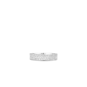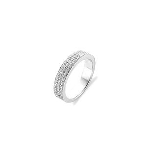 This beautifully elegant TI SENTO ring is ideal for smart day wear or cocktail evenings. Three rows of brilliant-cut cubic zirconia are set by hand into a band of high-quality rhodium-plated sterling silver which features a long lasting and lustrous shine. The inner side of the ring is smooth for all day comfortable wear. This design is ideal for stacking with other rings or fits seamlessly into the TI SENTO Mix & Match concept.